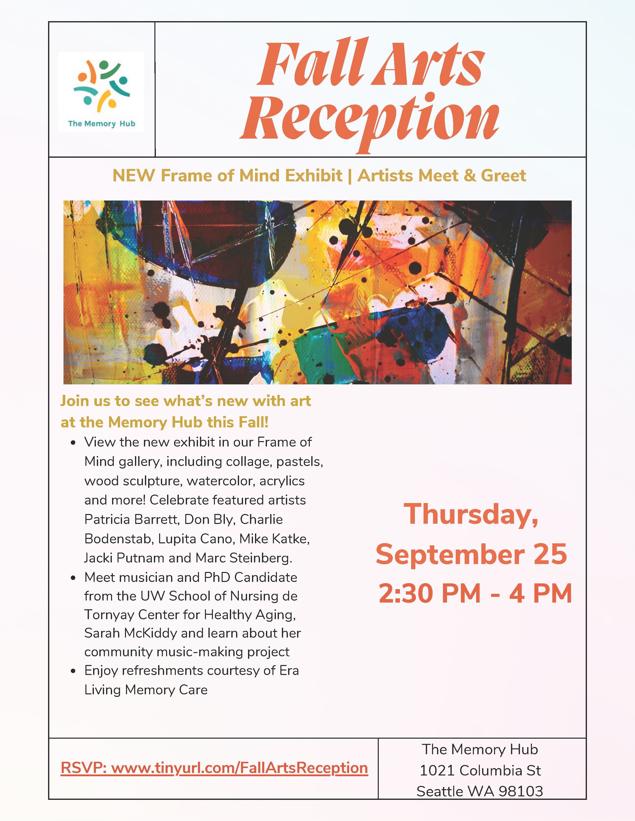 Join the Frye Art Museum and the UW Memory and Brain Wellness Center for an uplifting time of social connection! A unique opportunity for people living with dementia, their care partners, family, and friends to enjoy companionship, live music, and fun in a relaxed environment. Advance registration required.