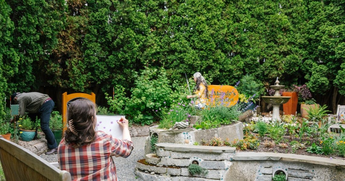We call Maude's Garden a "memory garden," a type of therapeutic garden that offers a protected botanical space for dementia-friendly programming and opportunities, as well as unique design features and accomodations for people living with memory loss. A memory garden is also defined by the participation of professionals who lead nature-based activities that encourage sensory exploration, social connection, and emotional well-being for people living with memory loss or dementia and their caregivers. Those who have worked in Maude's Garden programs include Laura Rumpf, HTR, and Margaret 'Peach' Jack, HTR, who are Registered Horticultural Therapists and Dawn Robinson, who is a Horticultural Therapy Practitioner. All of these passionate individuals have also collaborated with Genevieve Wanucha, Maude's Garden Project Lead, to contribute to the original garden plan, design, or ongoing development of the garden.