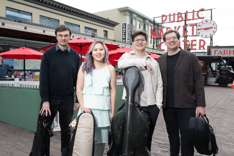 The Seattle Chamber Music Society's inaugural String Quartet-in-Residence, the Balourdet Quartet, is partnering with the Memory Hub and its community partners to embed in existing programs and co-design new music-based programming for people living with memory loss and their care partners. In collaboration with UW Nursing PhD candidate Sarah McKiddy, the quartet will work with participants and local dementia specialists from Fall 2025 - Spring 2026 to pilot models for community settings. The ethos and format of chamber music — interactive, intimate, and rapport-focused — offers rich avenues for participation, reciprocity, and co-creation in the memory loss community.